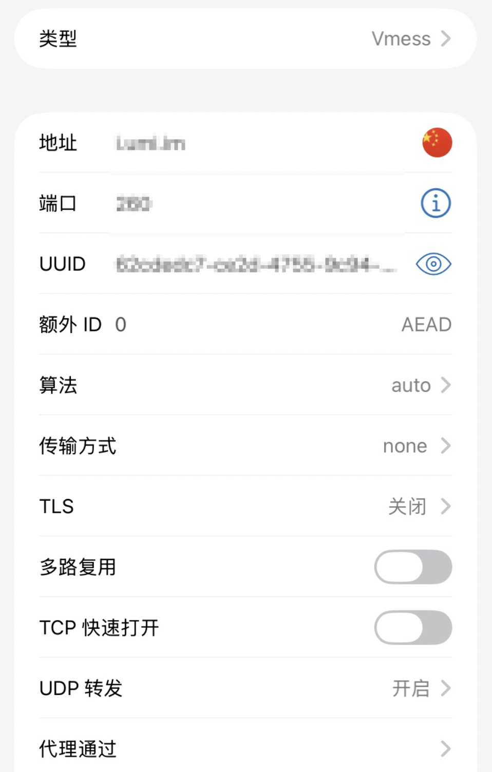 节点配置较为简单,填上 DDNS 地址 、端口、UUID ,其他配置参考我的: